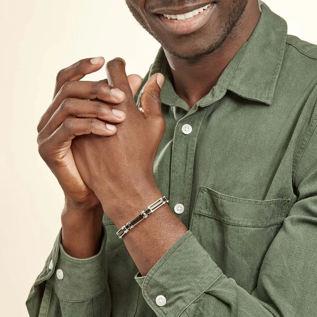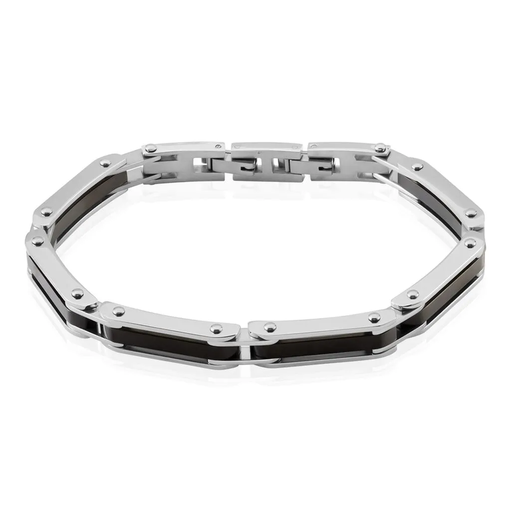 Bracelet Jourdan Homme El Castillo Acier Bicolore Noir Et Blanc