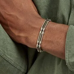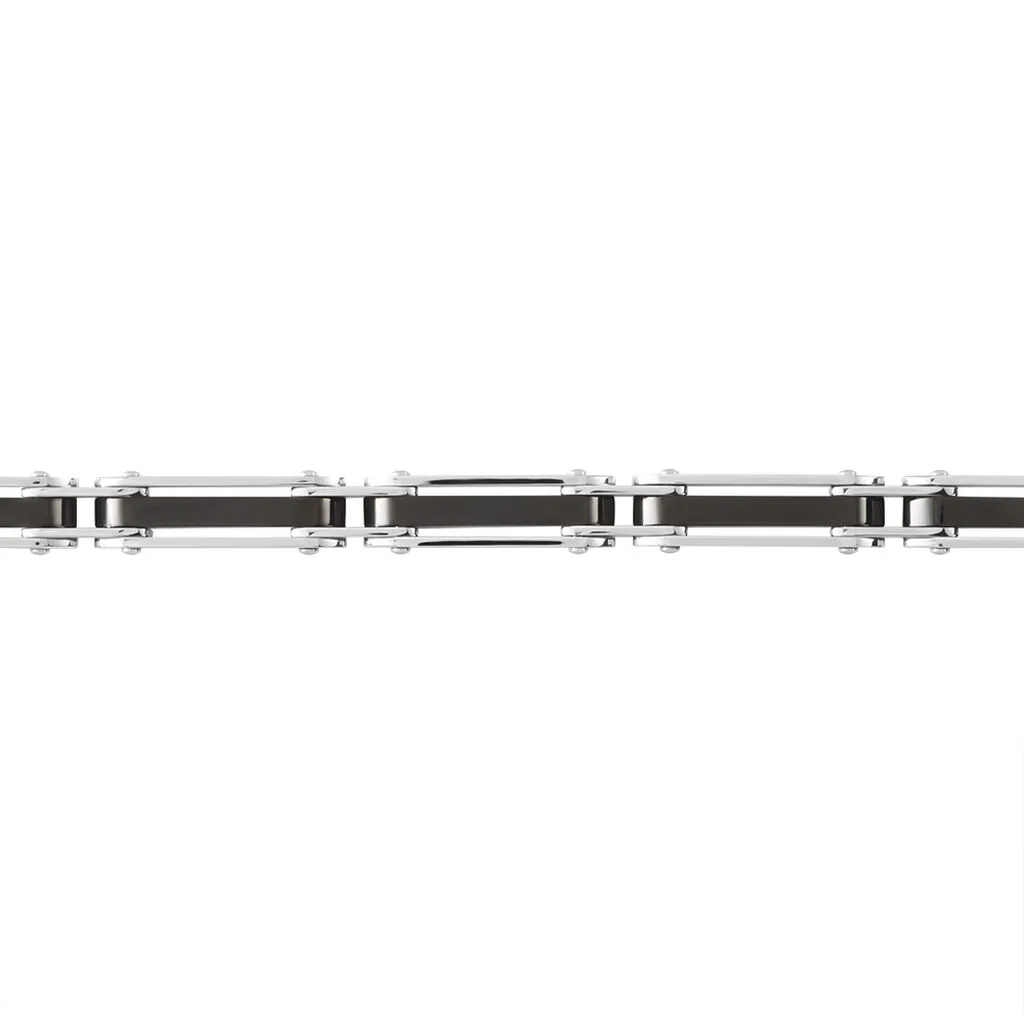 Bracelet Acier Bicolore Noir Et Blanc Forme Rectangle 20-21cm Jh110011b