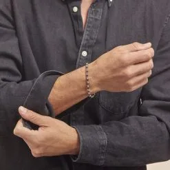 Bracelet Acier Blanc Et Rose Et Ceramique Noire Boules Fantaisies Alternees 21cm