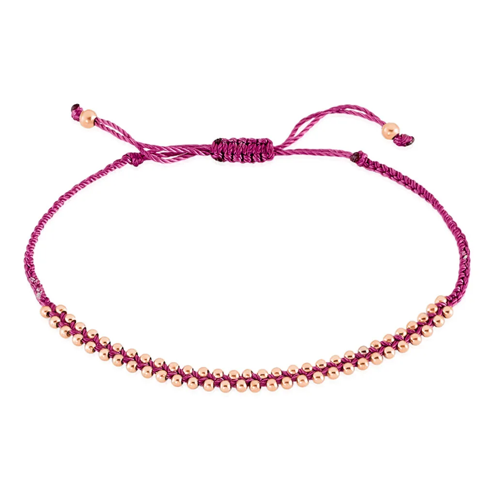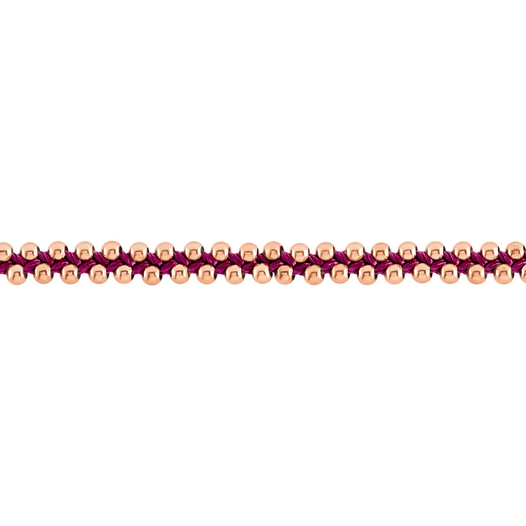 Bracelet Argent Rose 925/1000 Cordon Prune Ajustable