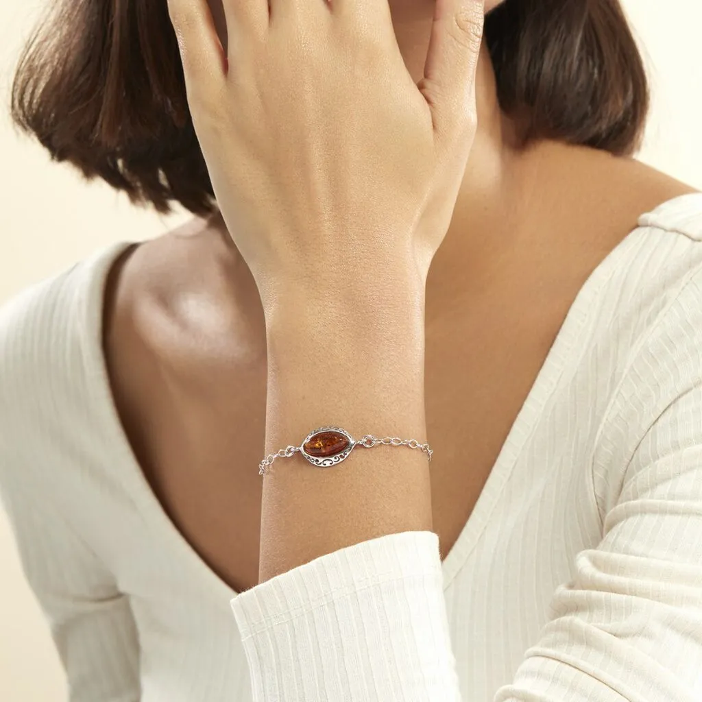 Bracelet Argent 925/1000 Ambre Cognac Ovale 20cm
