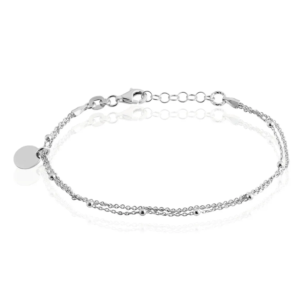 Bracelet Argent Blanc 925/1000 Pampille Pastille Double Mailles Forcat Et Boules 18cm
