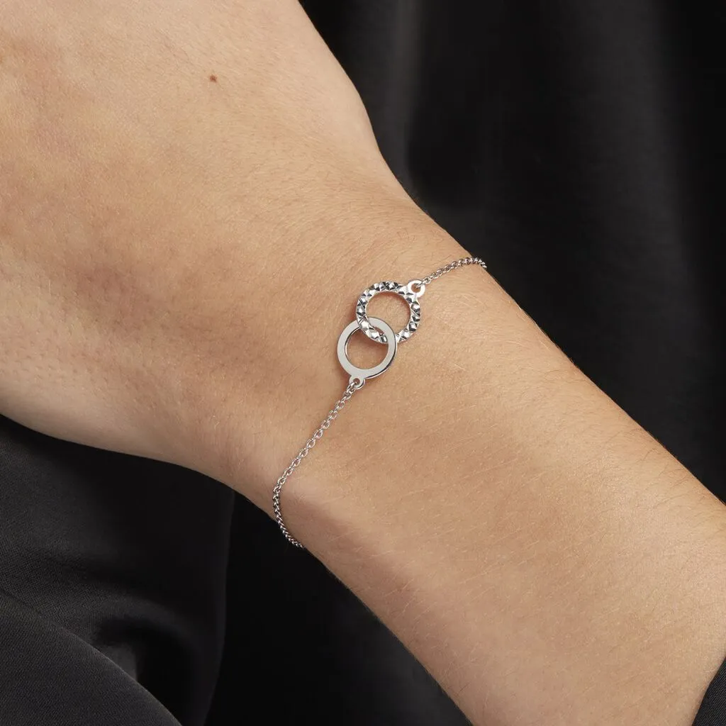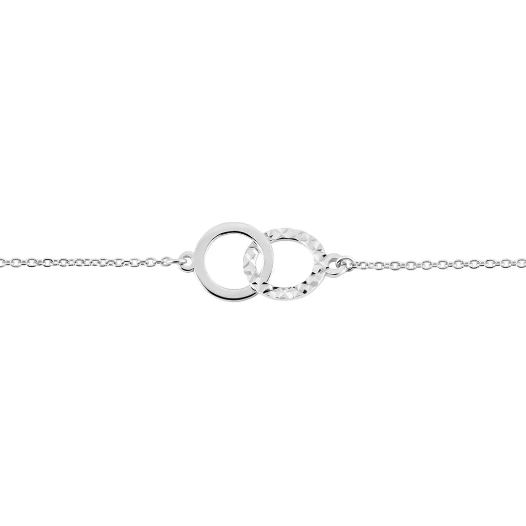 Bracelet Argent Blanc 925/1000 Double Cercles Effet Diamanté Maille Forçat 19cm