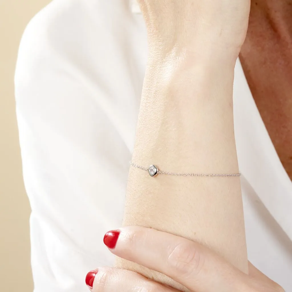 Bracelet Argent Blanc 925/1000 Solitaire Sertis Clos 1 Oxyde De Zirconium Maille Forcat 18cm