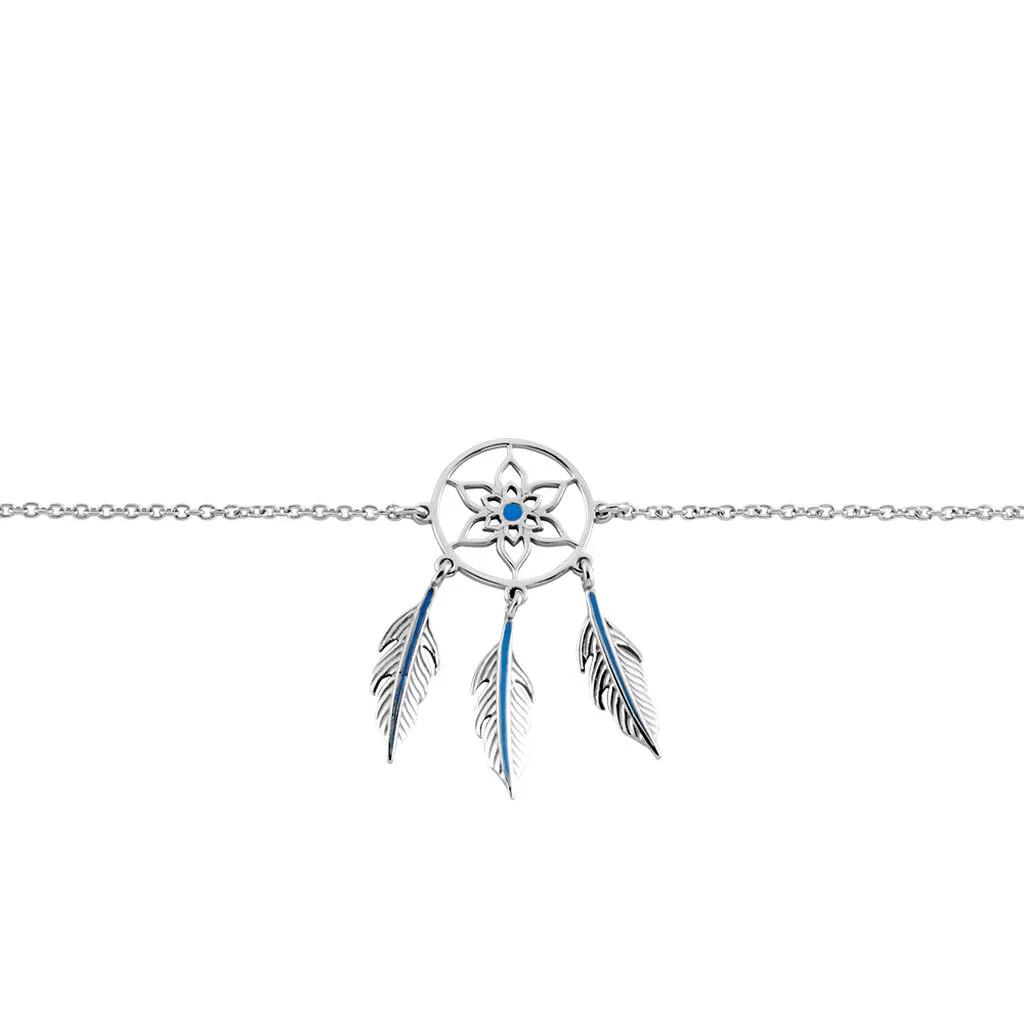Bracelet Argent Blanc 925/1000 Attrape Rêves Email Bleu Maille Forcat 19cm