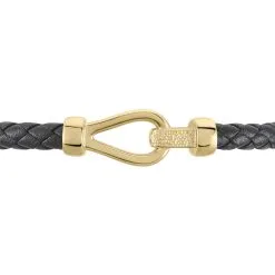 Bracelet Argent Dore 925/1000 Cordon Noir Ajustable