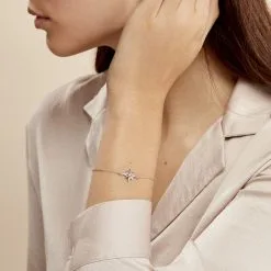 Bracelet Argent Blanc 925/1000 Forme Etoile Astrale Oxyde De Zirconium Central 18.5cm