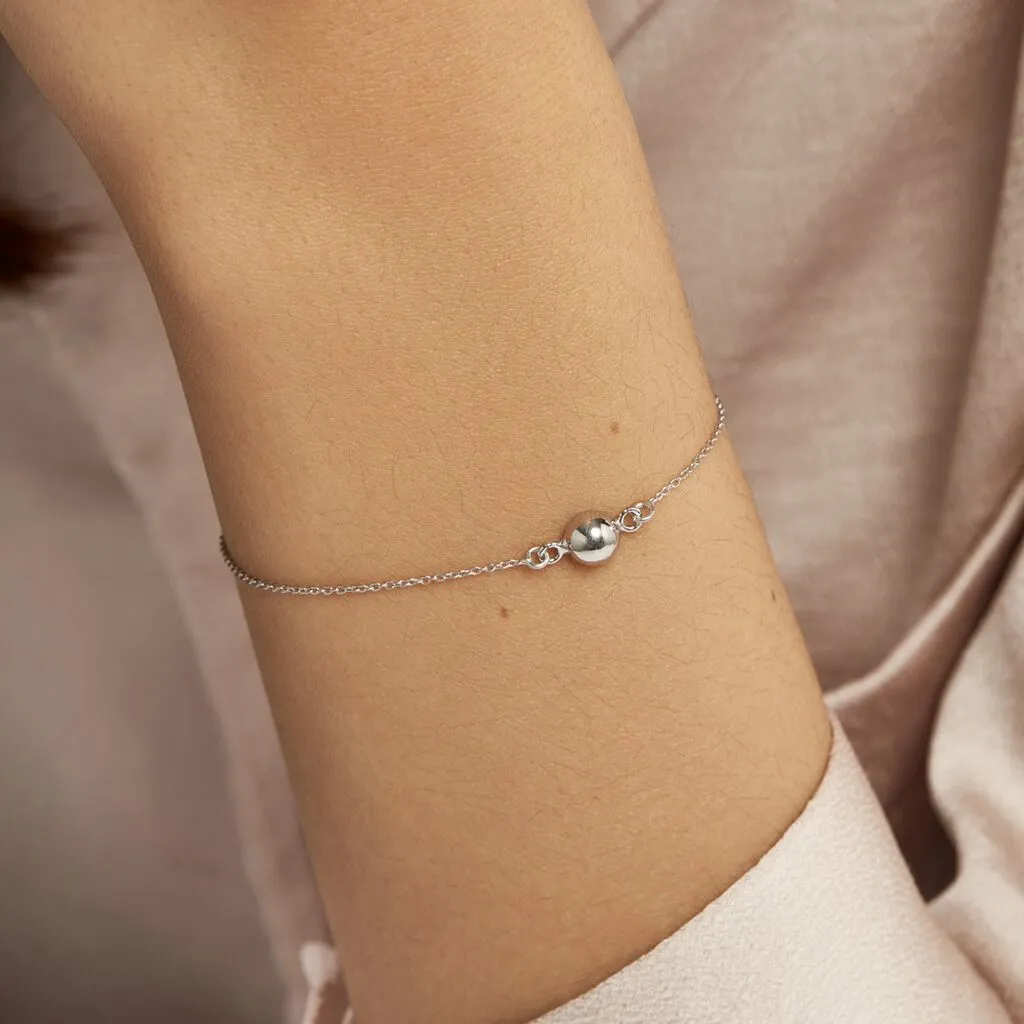 Bracelet Argent Blanc 925/1000 Demi Sphere Diametre 6mm Maille Forcat 19cm