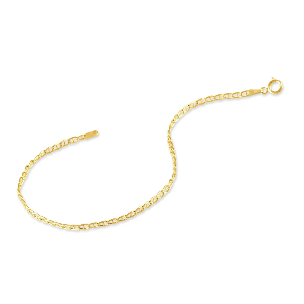 Bracelet Or Jaune 375/1000 Droit Maille Marine Plate 2mm 18cm
