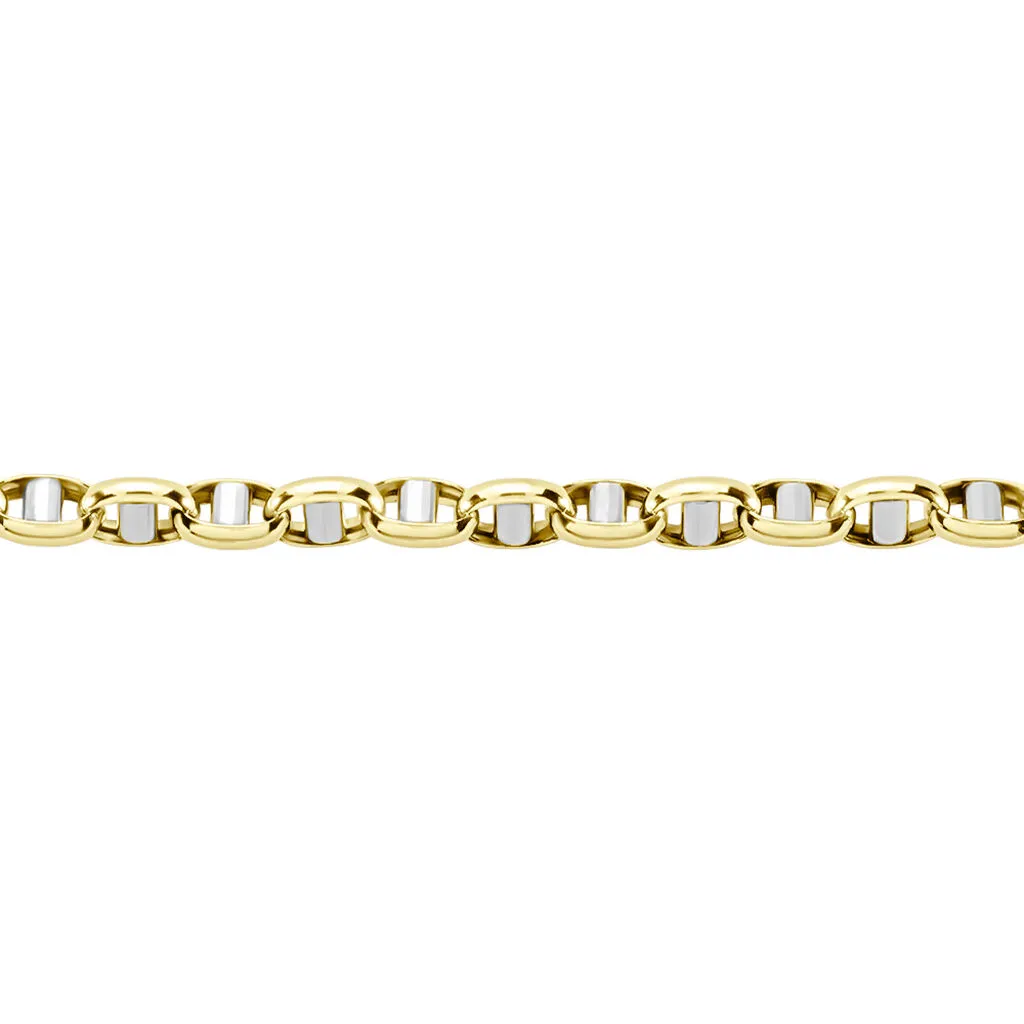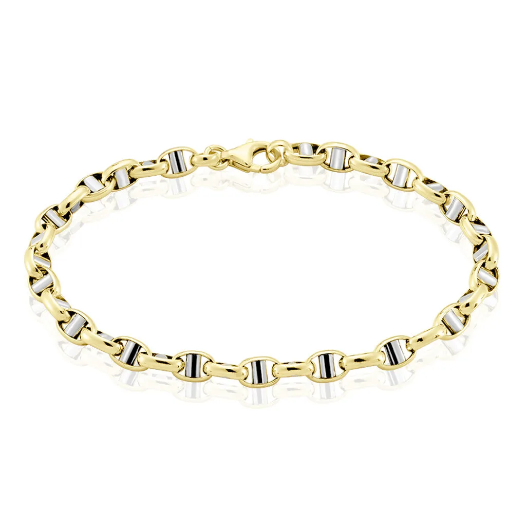 Bracelet Or Bicolore 375/1000 Maille Marine Ronde 5.10mm 21cm