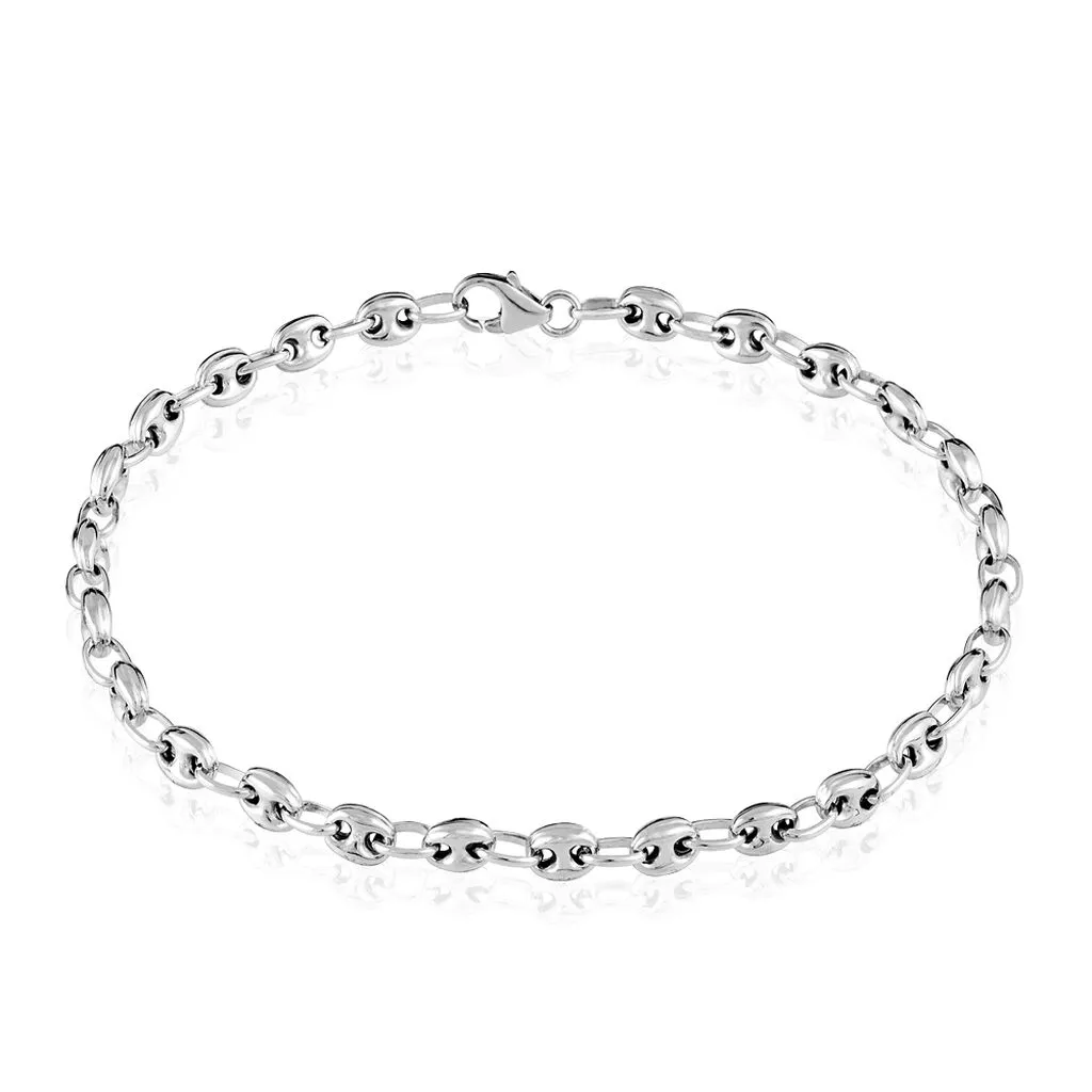 Bracelet Argent Blanc 925/1000 Maille Grain De Cafe 3mm 18cm