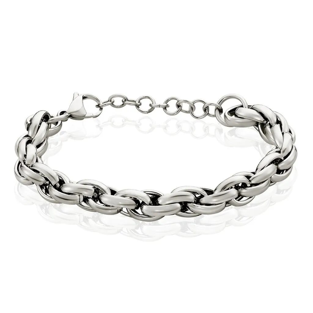 Bracelet Chaine Epaisse Acier Blanc Maille Fantaisie Largeur 8.6mm 19cm