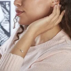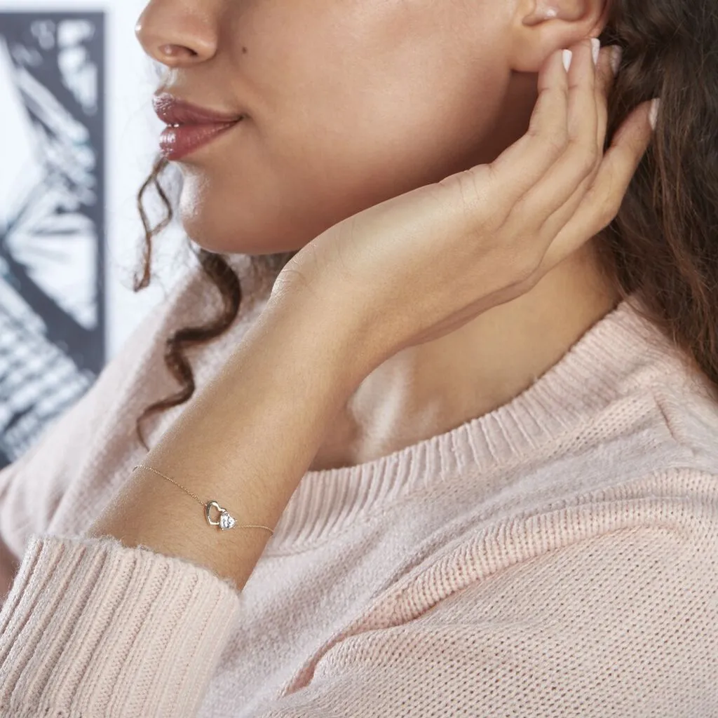 Bracelet Or Jaune 375/1000 Double Cœur Maille Forçat Oxyde De Zirconium 15.5+1.5+1.5cm