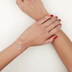 Bracelet Argent Blanc 925/1000 Fleur Ajouree Maille Forcat 19cm