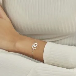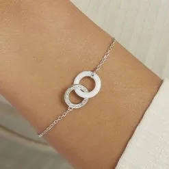 Bracelet Argent Blanc 925/1000 Cercles Entrelaces Ajoures Ceramique Blanche Et Oxydes De Zirconium 19cm