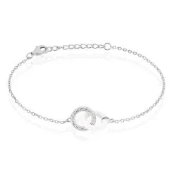Bracelet Argent Blanc 925/1000 Cercles Entrelaces Ajoures Ceramique Blanche Et Oxydes De Zirconium 19cm