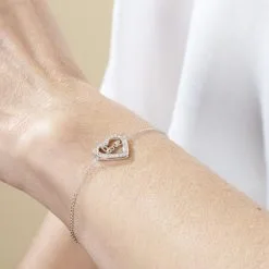 Bracelet Argent Blanc 925/1000 Motif Love Coeur Ajoure Avec Oxydes De Zirconium 18.5cm