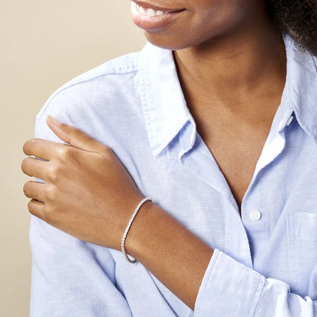 Bracelet Argent 925/1000 Riviere Serti Griffes 2mm Oxyde 17cm