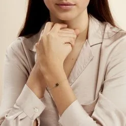 Vous pouvez très facilement accorder vos tenues avec ce bracelet en argent 925/1000ème. Le modèle est réalisé avec une maille forçat classique rehaussée d’une pierre œil de chat ovale noire. Une jolie breloque trèfle se trouve sur la chaîne d’ajustement. Ce bracelet existe aussi en d’autres couleurs.