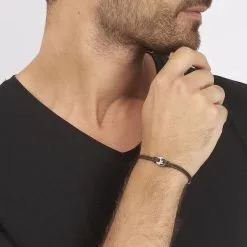 Moderne et stylé en même temps, ce bracelet accompagnera vos looks branchés. Il se compose d’un cordon double tour avec des détails en acier. Cet élégant modèle est proposé dans des tons résolument masculins : marron et gris argenté. Facile à associer, il se porte avec tous les styles. Existe en d’autres couleurs.