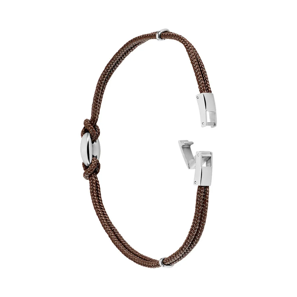 Bracelet Acier Blanc Grain Cafe Acier Blanc Et Cordons Marrons 21cm