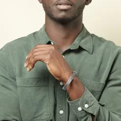 Moderne et branché, ce bracelet est l’accessoire parfait pour compléter un look. Il est composé d’un triple câble en acier et de deux fils en coton noir qui s’harmonisent de façon élégante à vos tenues. Ce modèle est doté d’un fermoir à clip. Il existe aussi en d’autres couleurs.
