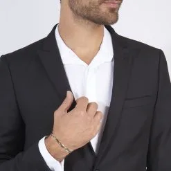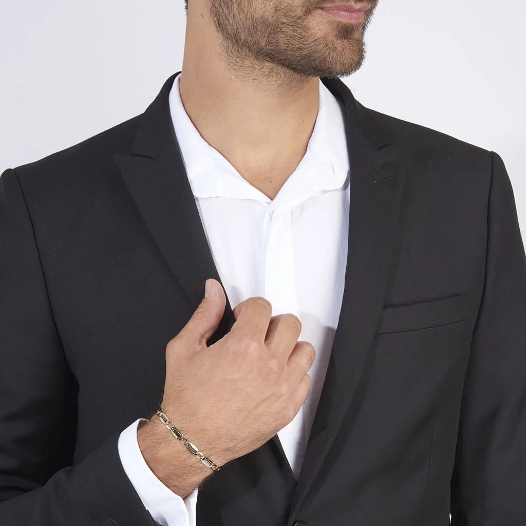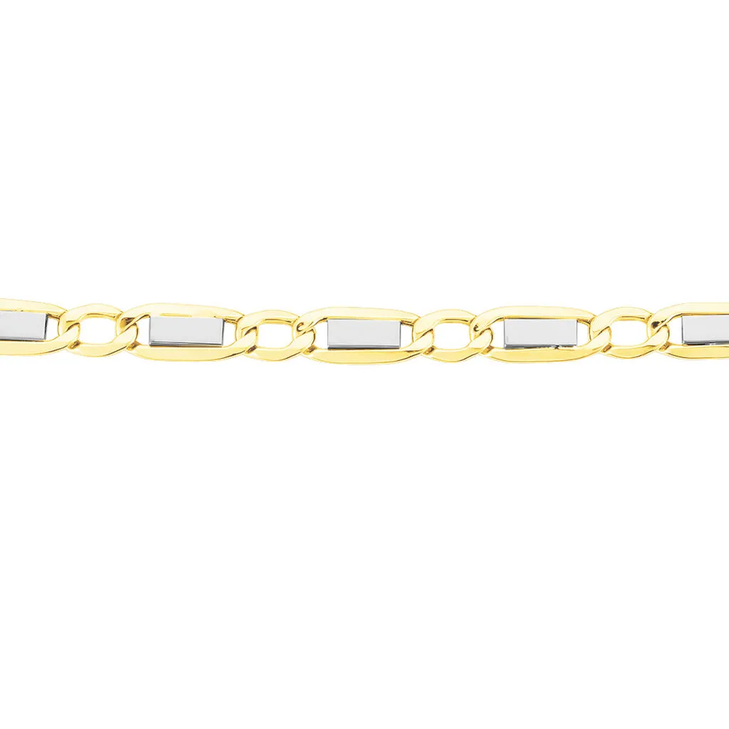 Bracelet Or Bicolore 375/1000 Maille Plaquette 5.7mm 19cm