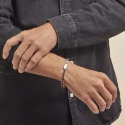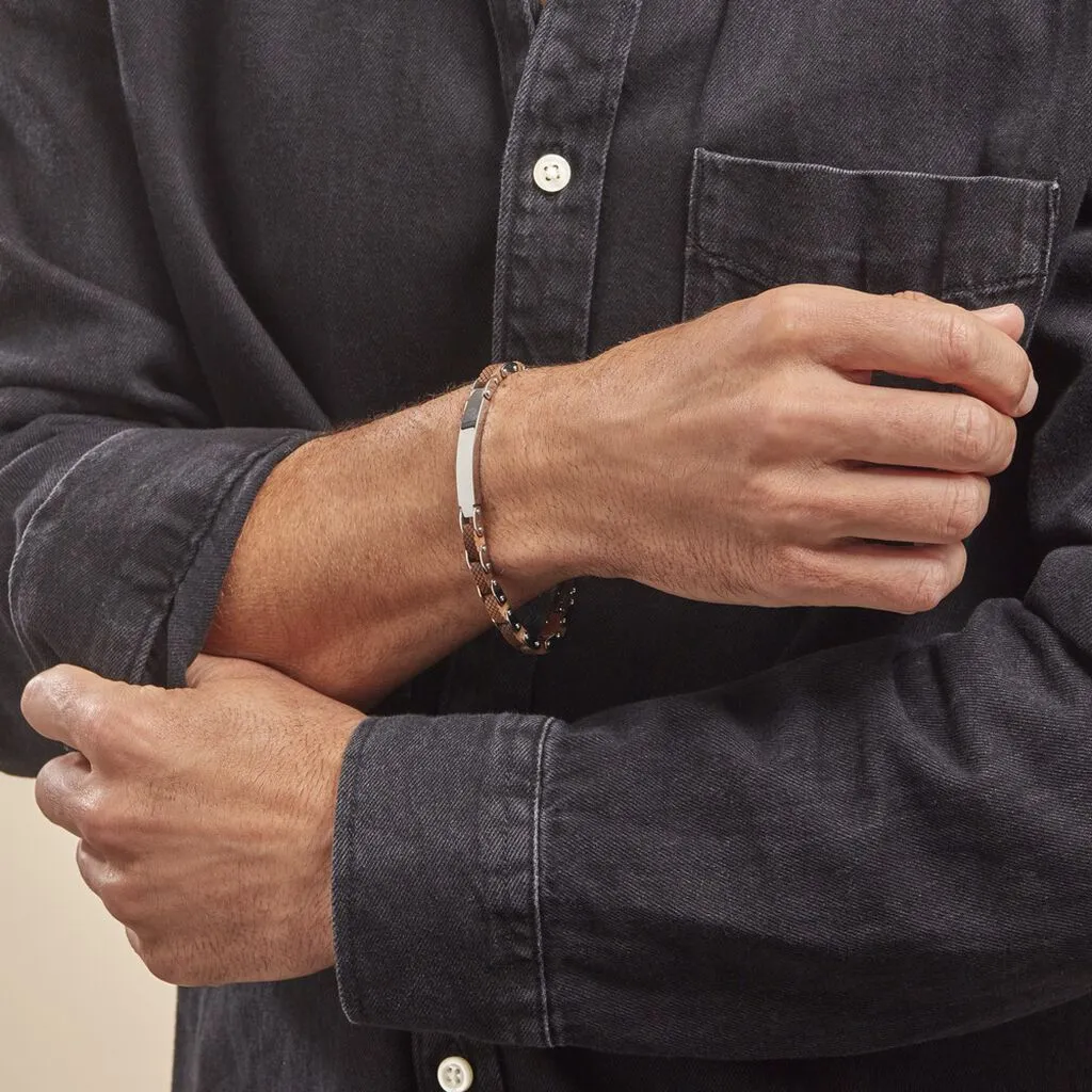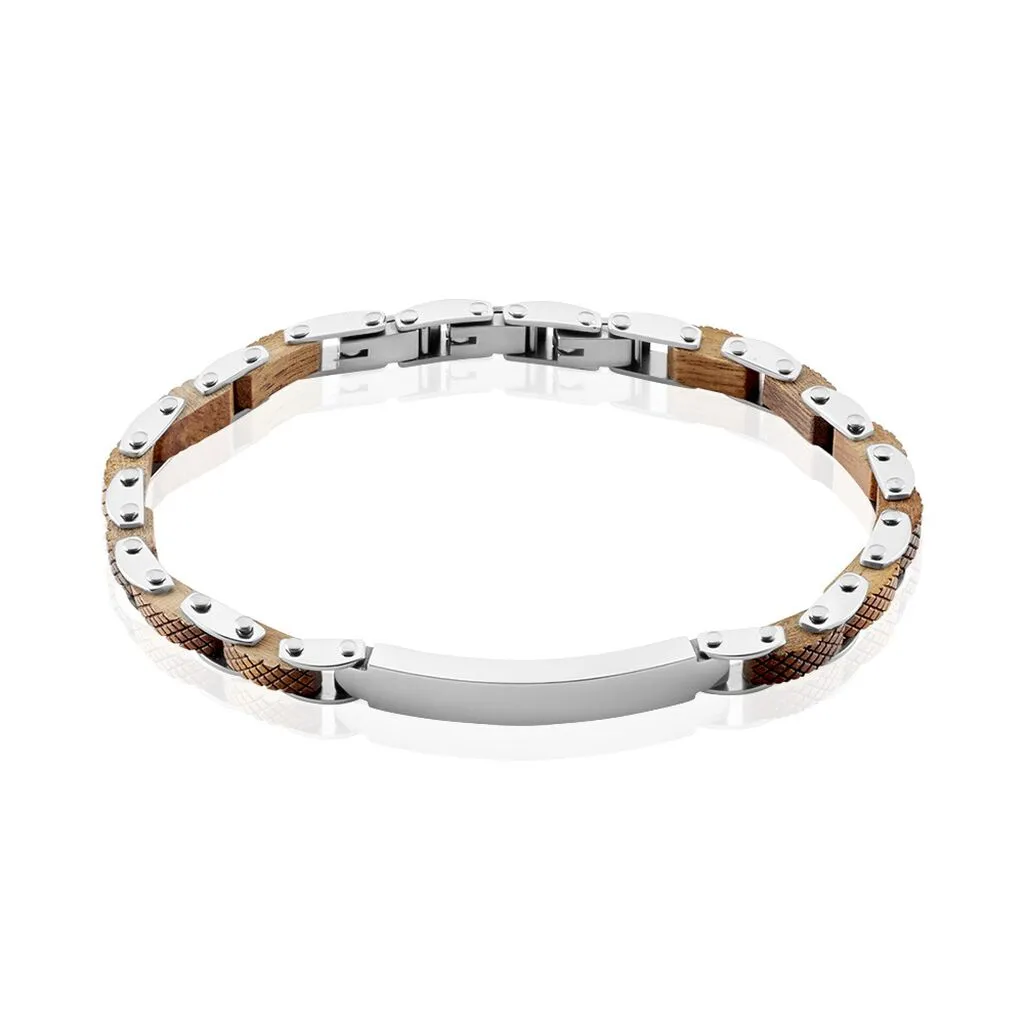 Bracelet Identité Acier Blanc Chaine Mécanique Effet Bois 21cm