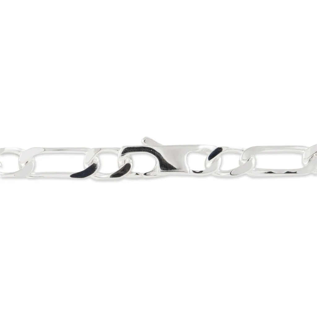 Bracelet Identite Argent Blanc 925/1000 Maille Alternee 1/1 7mm 21 Cm