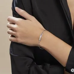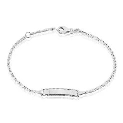 Bracelet Identité Argent Blanc 925/1000 Plaque Rectangulaire Effet Diamanté Maille Fantaisie Epaisseur 2mm 18cm