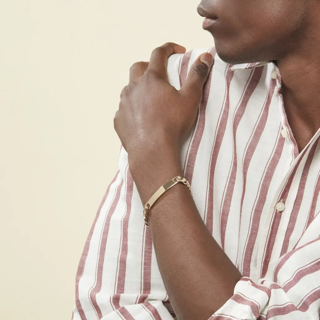 Bracelet Identite Plaque Or Jaune Maille Alterne 1/3 8mm 21cm