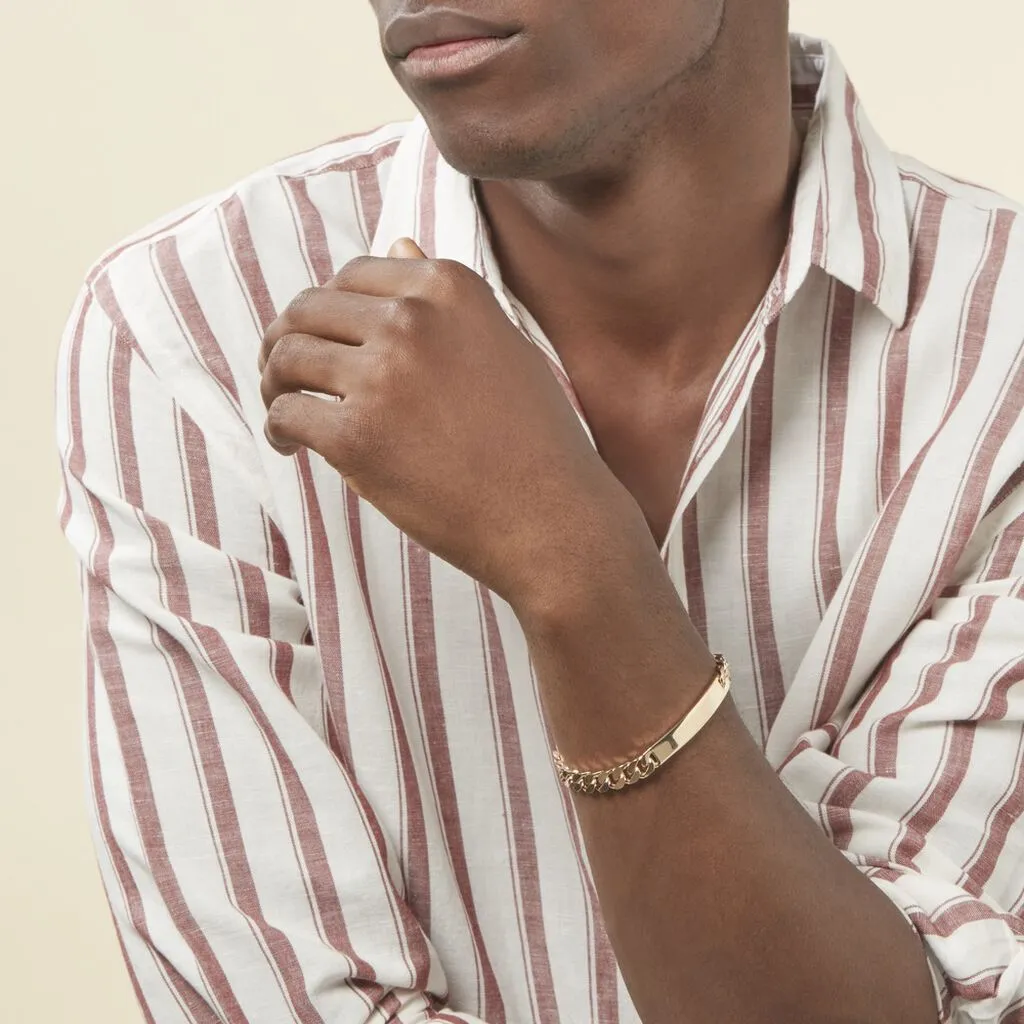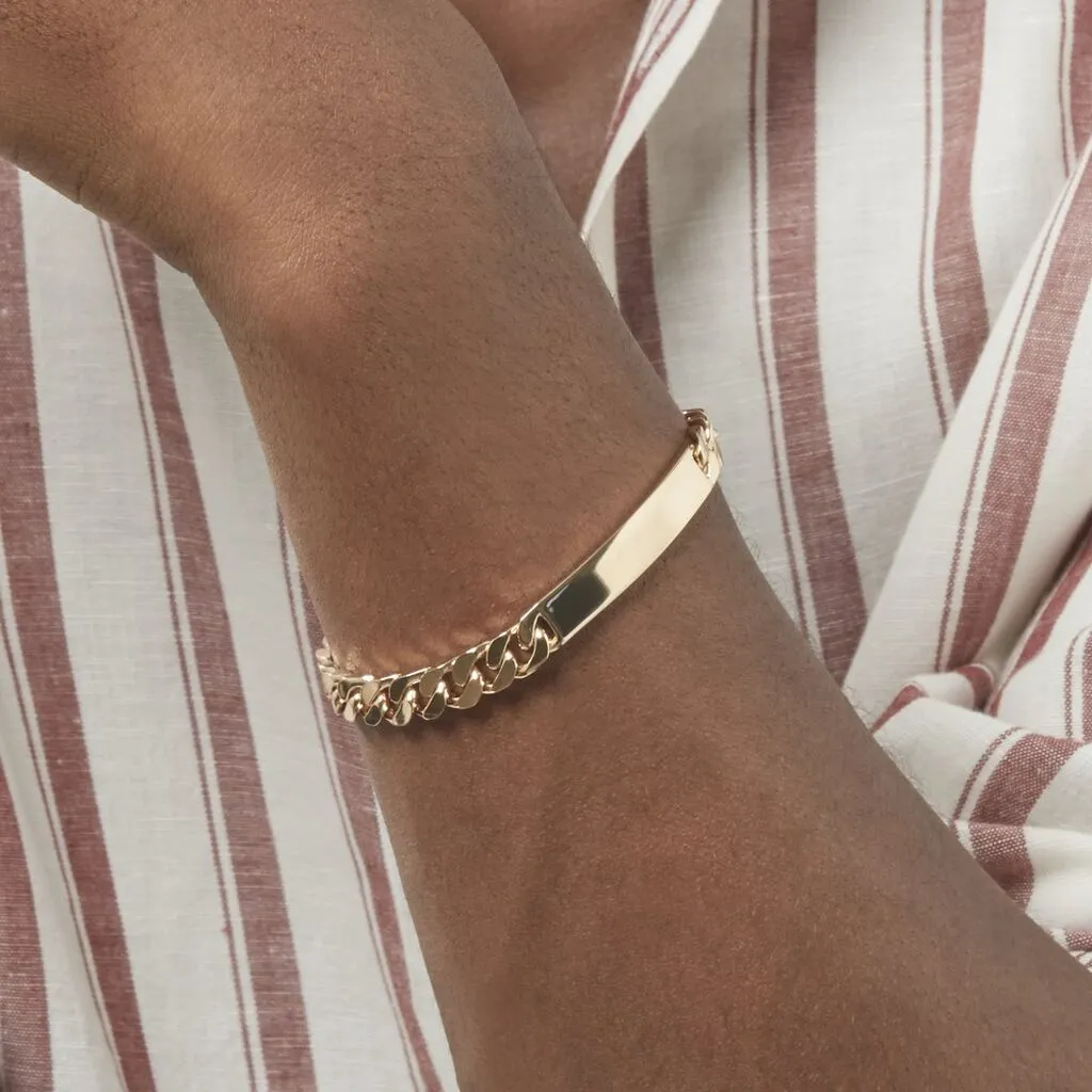 Bracelet Identite Plaque Or Jaune Maille Gourmette 8mm 21cm