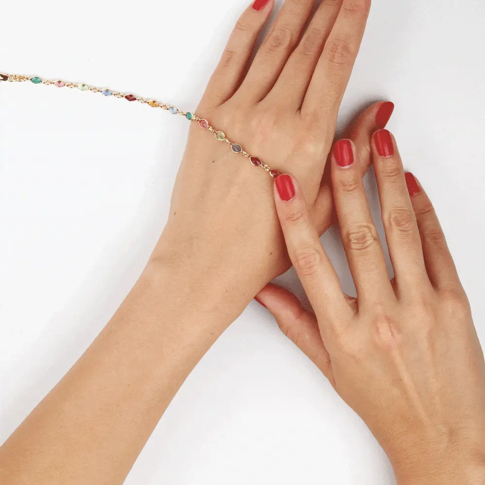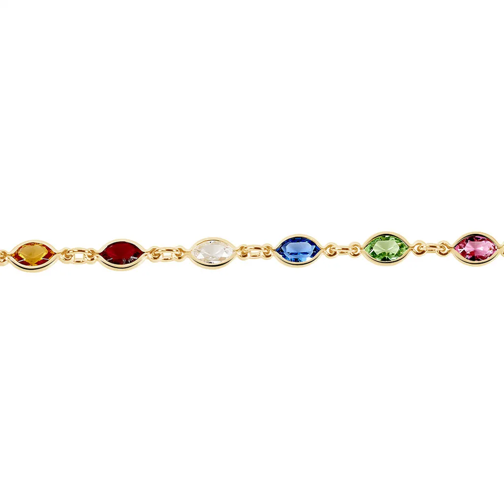 Bracelet Plaqué Or Jaune Pierres Multicolores 18cm