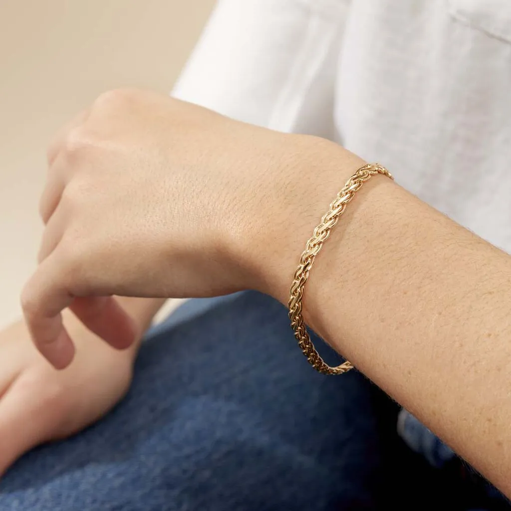 Bracelet Or Jaune 375/1000 Maille Palmier Ecrase 5mm 19cm