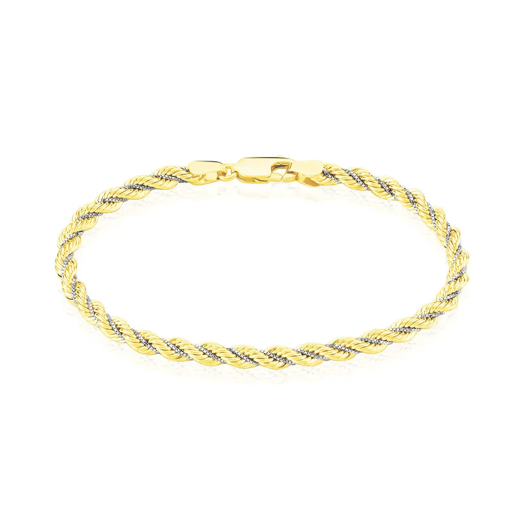 Bracelet Or Bicolore 375/1000 Maille Corde Et Vénitienne 4mm 18cm