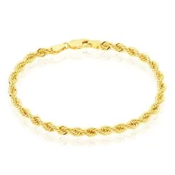 Bracelet Or Jaune 375/1000 Maille Corde 4mm 20cm