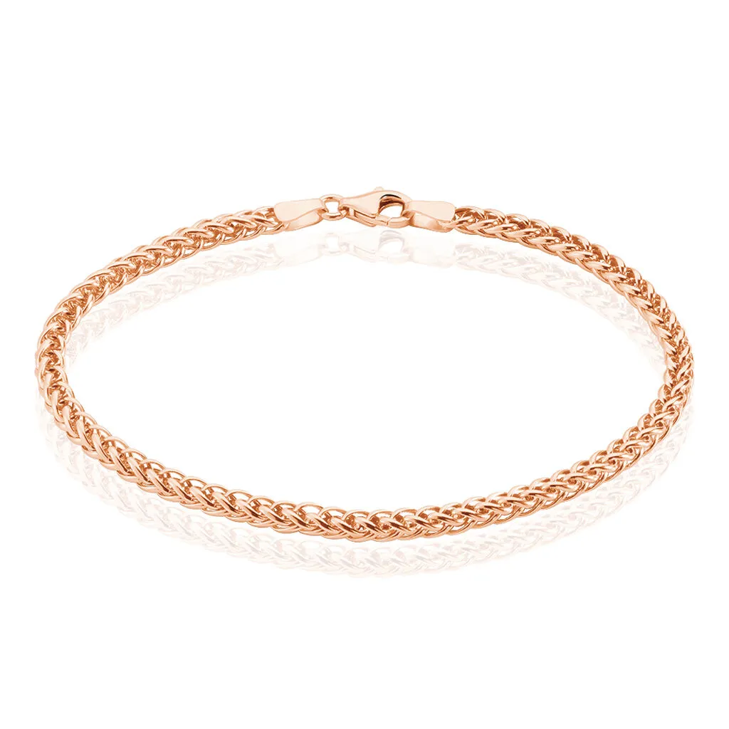 Bracelet Or Rose 375/1000 Maille Spiga Triple 3.2mm 18cm
