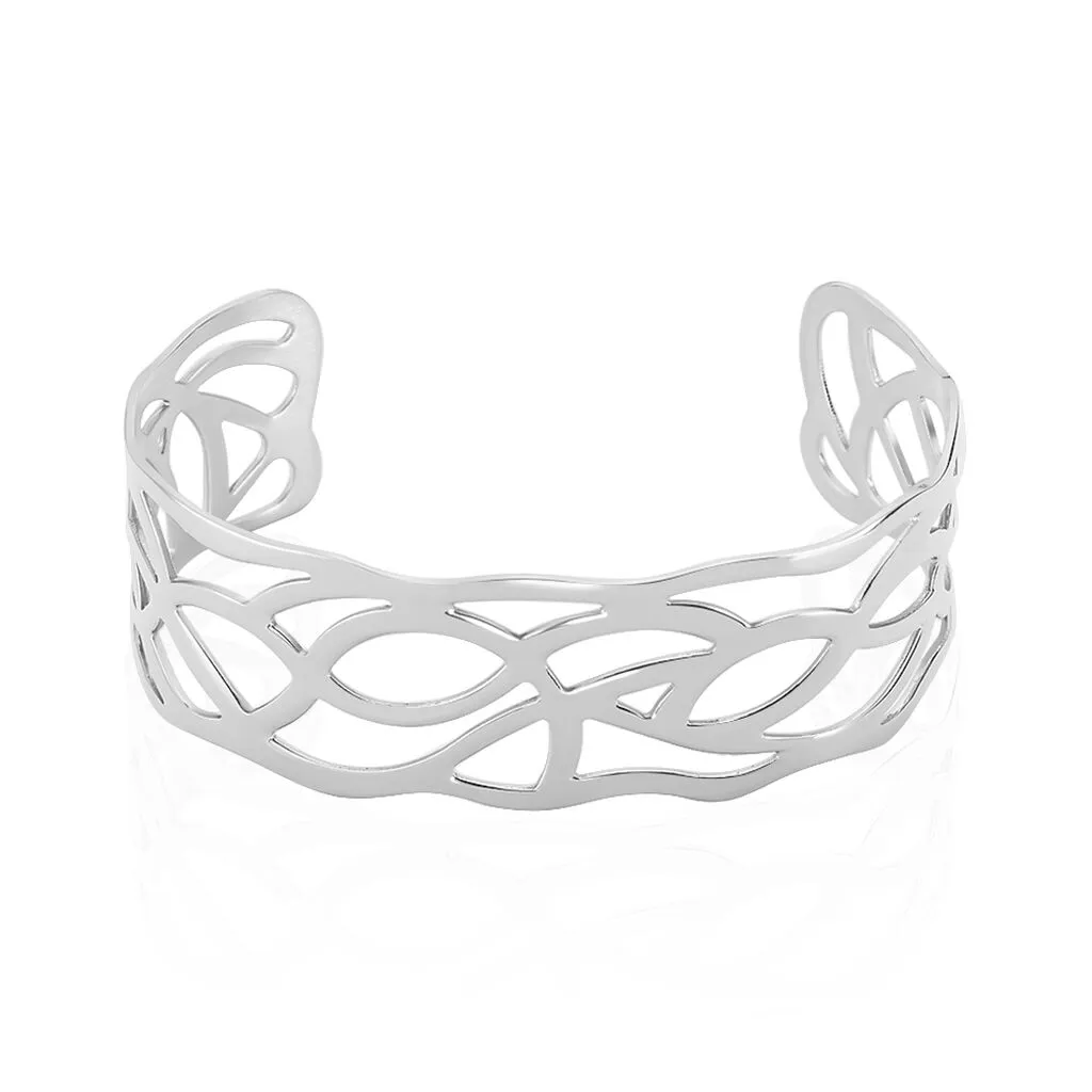 Bracelet Demi Jonc Acier Blanc Large Ajoure Diametre 62