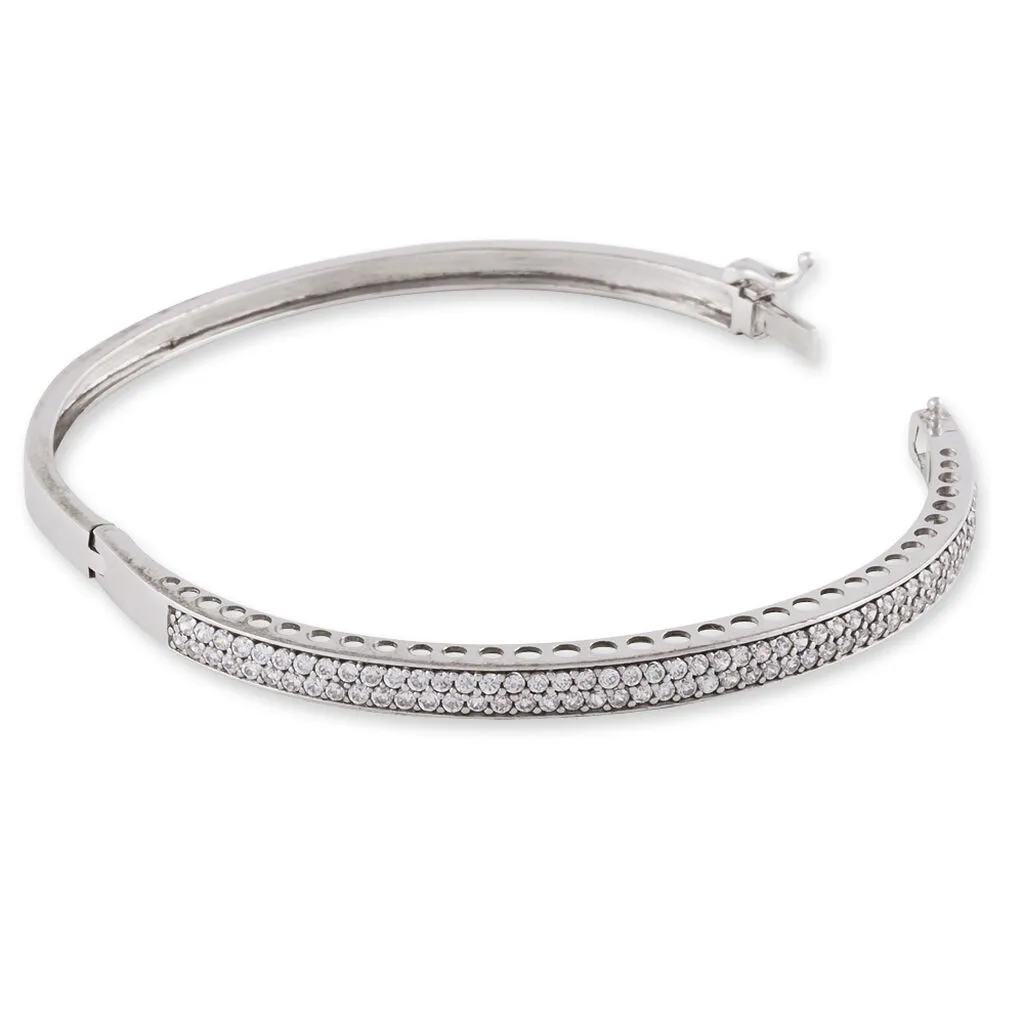 Bracelet Jonc Argent Blanc 925/1000 2 Rangs D’oxydes De Zirconium