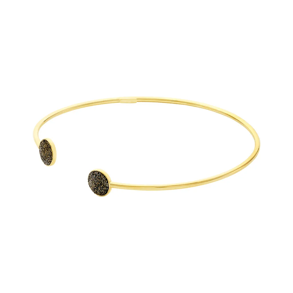 Bracelet Or Jaune 375/1000 Jonc Double Pastilles Glitter Bronze