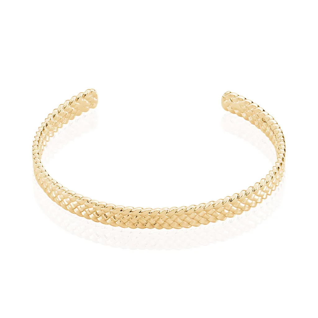 Bracelet Jonc Plaqué Or Jaune Ouvert Effet Tresse Diametre 55*45mm
