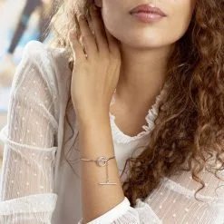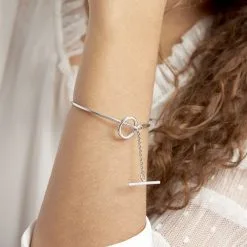Bracelet Jonc Argent Blanc 925/1000 Cercle Ajoure Barrette Horizontale Diametre 70mm
