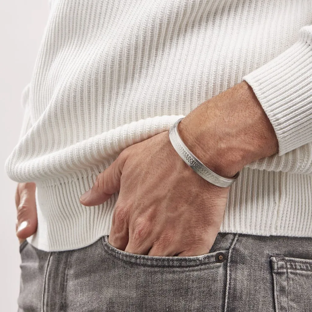 Bracelet Jonc Ouvert Acier Blanc Effet Martele 65mm
