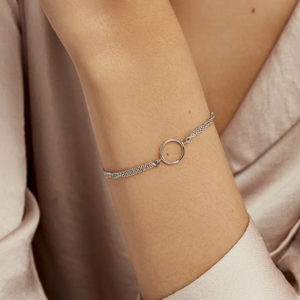 Bracelet Argent Blanc 925/1000 Cercle Ajoure Triple Mailles Forcat 18cm