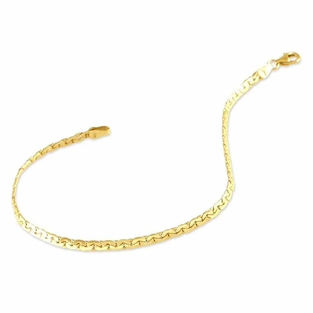 Bracelet Or Jaune 375/1000 Maille Haricot 3mm 19cm