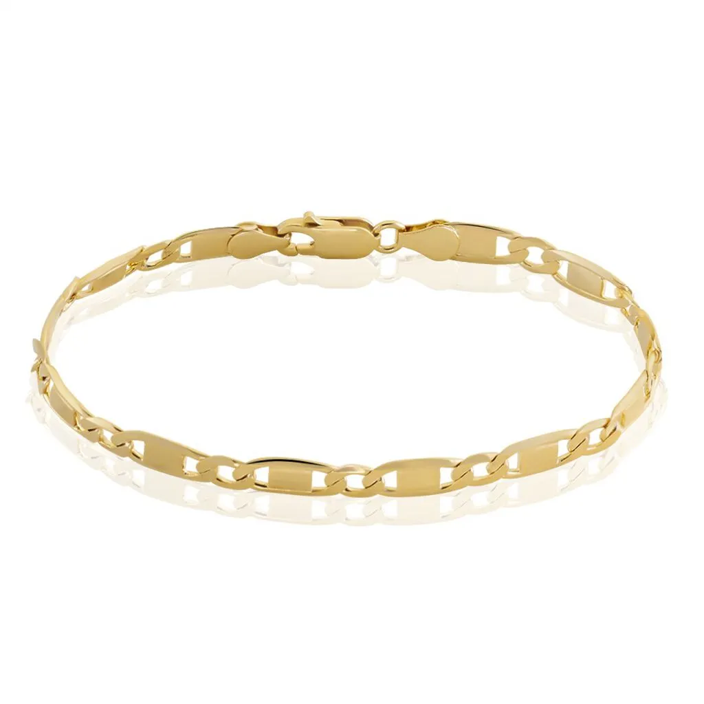 Bracelet Plaque Or Jaune Maille Alternee Plaquettes Epaisseur 3mm 21cm