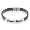 Bracelet Acier Blanc Boules Noires Et Acier Blanc Et Chaine Franco 22cm