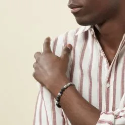 Bracelet Kiyo Acier Blanc Pierre De Lave
