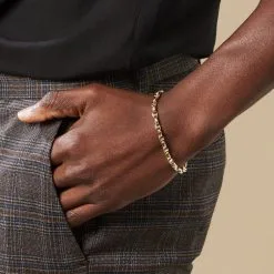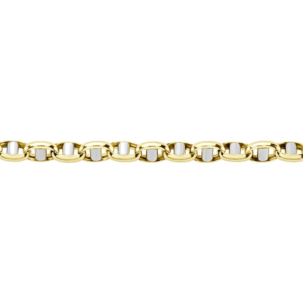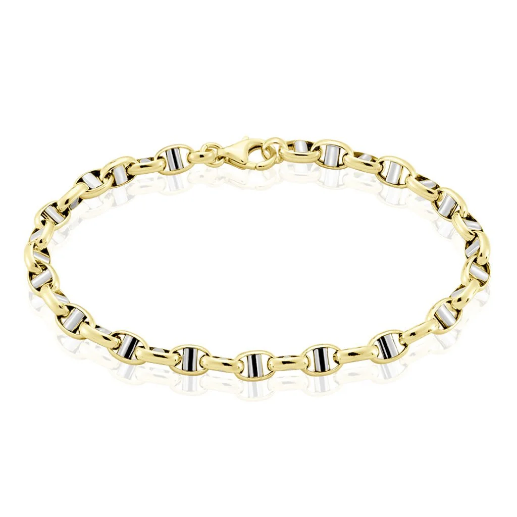 Bracelet Or Bicolore 375/1000 Maille Marine Ronde 5.10mm 18cm