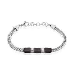 Bracelet Zero Limite Acier Maille Fantaisie Plaque Ip Noir Et Acier 21cm